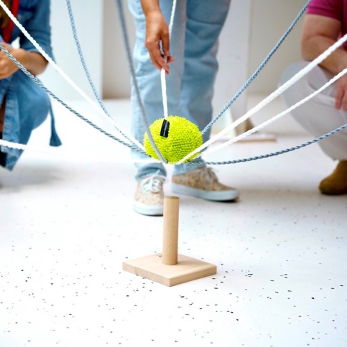 Так само і в фінальному завданні гри, коли міні-групи поєднуються спеціальними стрічками, вони напряму відчувають імпульси одразу 2х інших команд, які напряму впливають на виконання ними вправи.