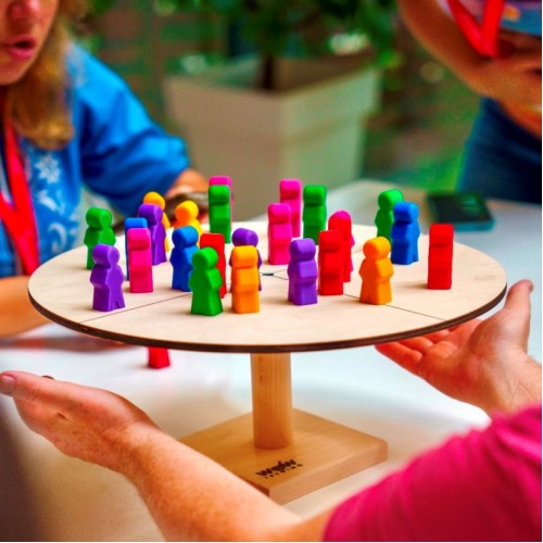 круглою основою, поруч з нею – 30 чоловічків різної ваги, та різних кольорів. На